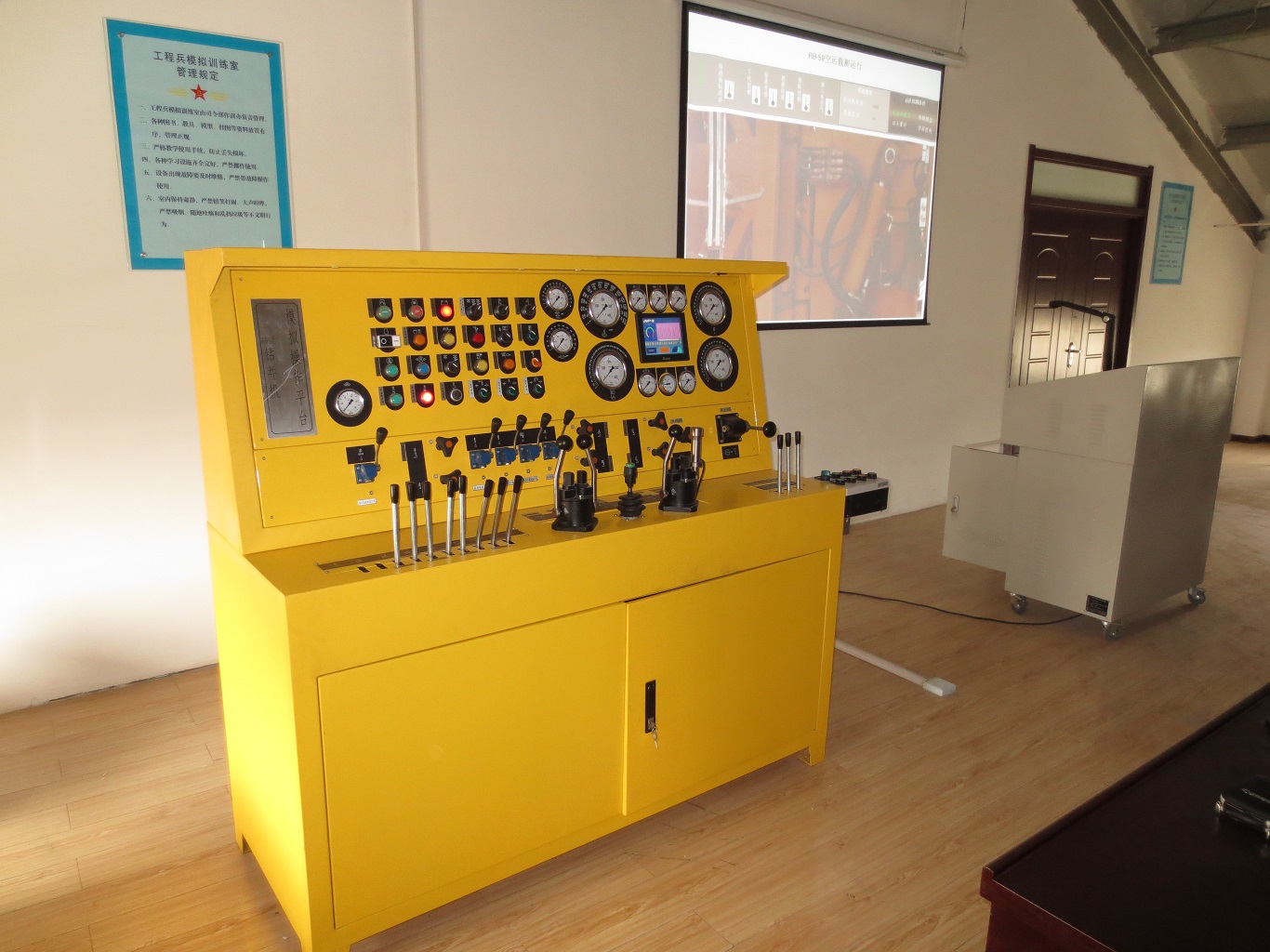 該平臺是進行仿真訓練和教學的專用設備,由操作臺、信號采集系統(tǒng)、仿真計算系統(tǒng)和視頻展示系統(tǒng)組成。設備通過操作平臺和軟件模擬結合的方式,對鉆井機的工作過程進行模擬和視頻演示。利用操作元件末端的電氣改造,采集動作信號,傳遞給PLC之后進行數(shù)據(jù)篩選運算,再傳遞給上位機,實現(xiàn)作業(yè)操作動作的模擬,以文字、圖片、視頻等多媒體方式在顯示界面出現(xiàn),使操作人員迅速熟悉鉆井機的操作和使用方法,全面掌握裝備的性能,提高操作水平。