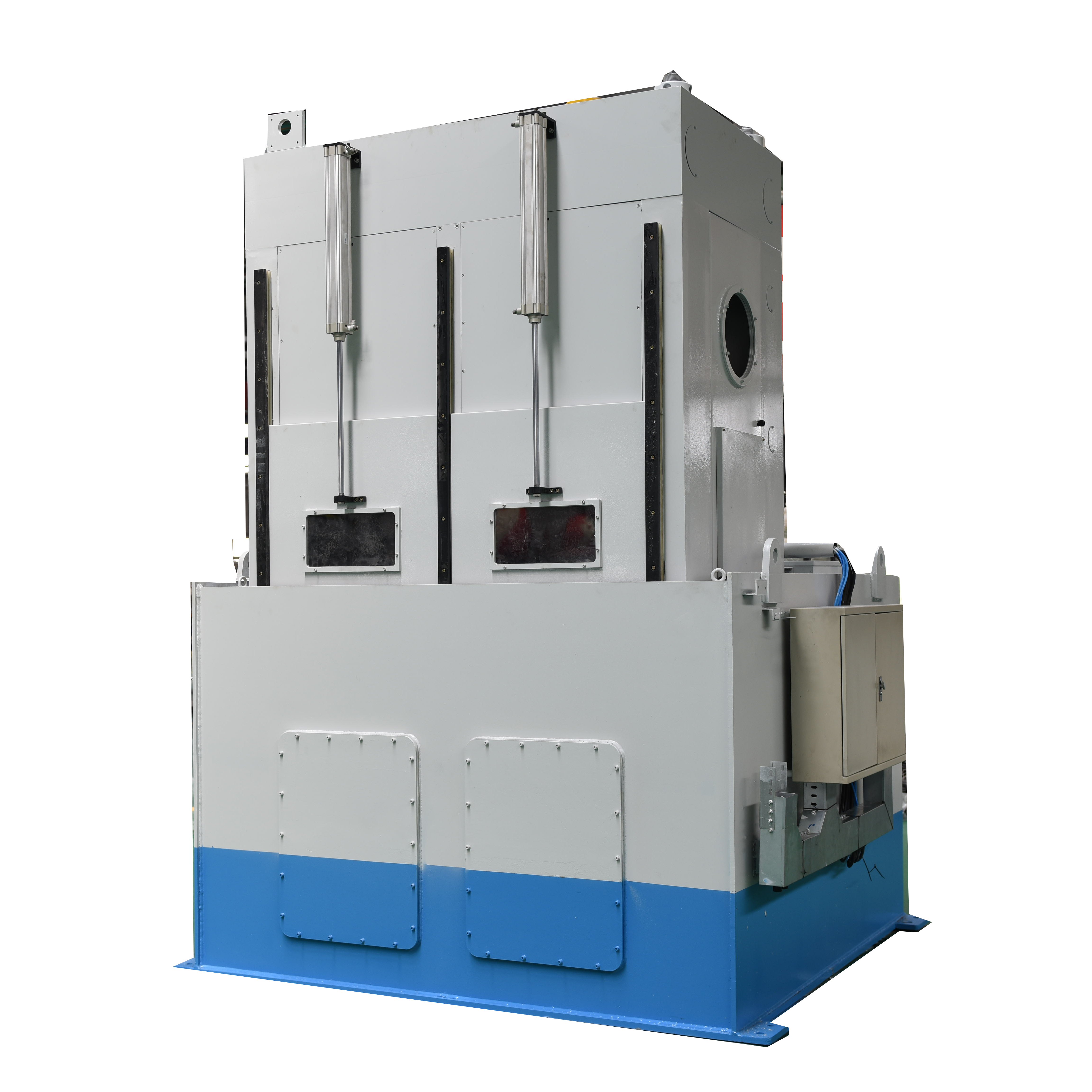 ZCJ-2G-400型二工位軸承淬火壓床,是用于滲碳鋼軸承內(nèi)外套圈進(jìn)行二次淬火的專(zhuān)用設(shè)備。該設(shè)備與加熱爐配套使用,零件通過(guò)二次加熱后迅速轉(zhuǎn)移至淬火壓床實(shí)施急速冷卻,并在模具的限形作用下,有效阻止零件的漲縮,減小零件形變和畸變,從而使工件尺寸保持一致性和重復(fù)性,以達(dá)到控制軸承的熱處理畸變和提升熱處理質(zhì)量的目的。淬火工件包括:?jiǎn)五F外圈、單錐內(nèi)圈、雙錐外圈、雙錐內(nèi)圈以及圓柱內(nèi)外圈等。壓床可進(jìn)行自動(dòng)/手動(dòng)操作,PLC程序控制。